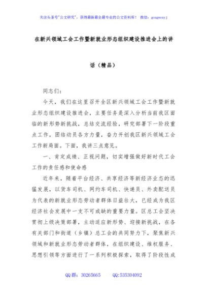 / 在新兴领域工会工作暨新就业形态组织建设推进会上的讲话(精品)