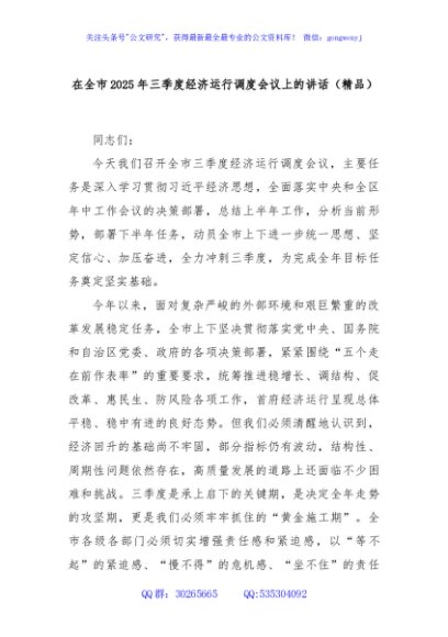 / 在全市2025年三季度经济运行调度会议上的讲话(精品)