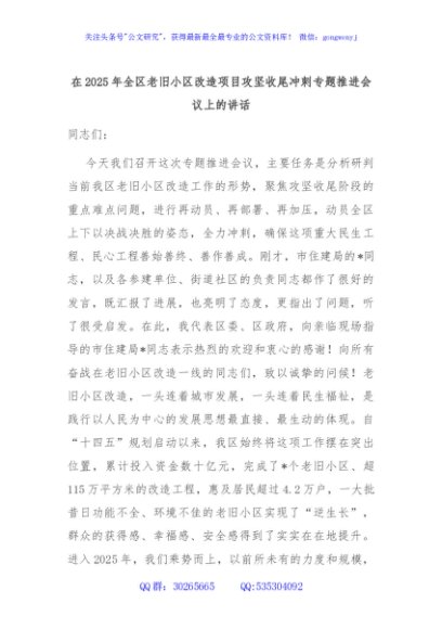 / 在2025年全区老旧小区改造项目攻坚收尾冲刺专题推进会议上的讲话