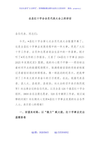 / 在县红十字会会员代表大会上的讲话