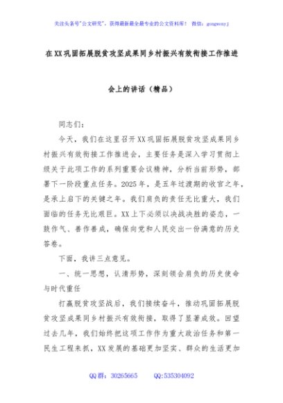 / 在XX巩固拓展脱贫攻坚成果同乡村振兴有效衔接工作推进会上的讲话(精品)