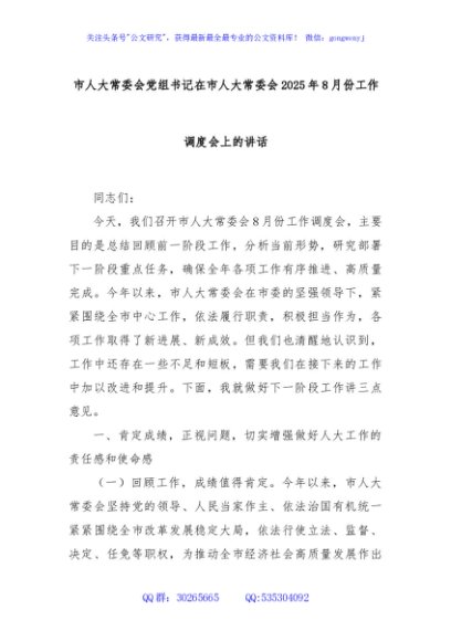 / 市人大常委会党组书记在市人大常委会2025年8月份工作调度会上的讲话