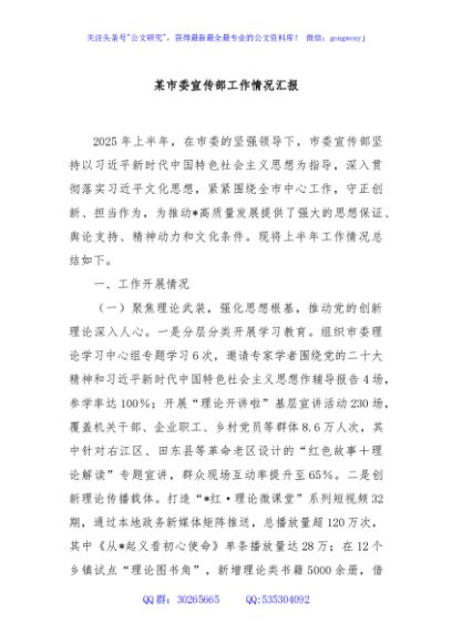 / 某市委宣传部工作情况汇报