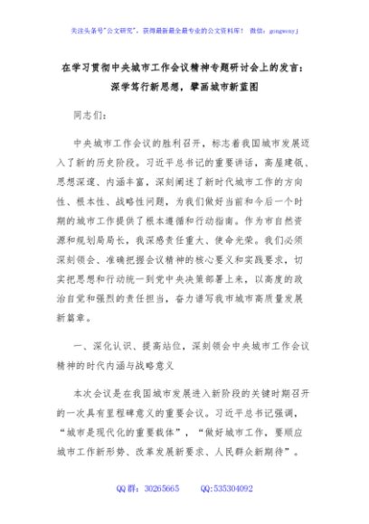 / 在学习贯彻中央城市工作会议精神专题研讨会上的发言:深学笃行新思想,擘画城市新蓝图