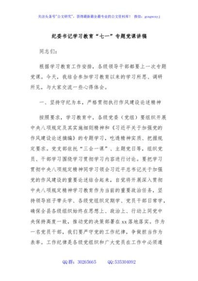 / 纪委书记学习教育“七一”专题党课讲稿