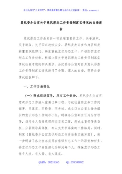 / 县纪委办公室关于意识形态工作责任制落实情况的自查报告