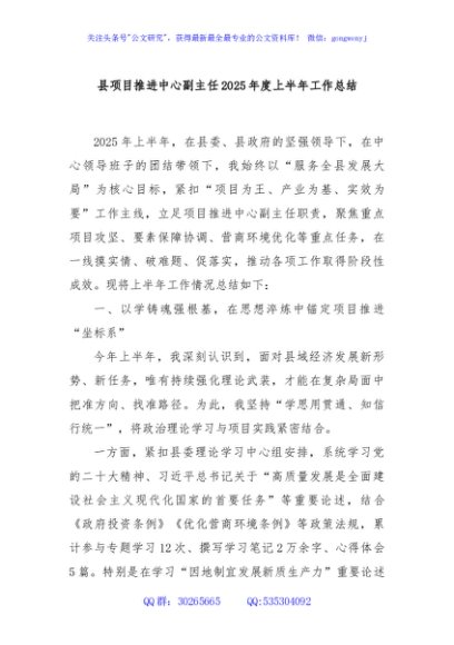 / 县项目推进中心副主任2025年度上半年工作总结