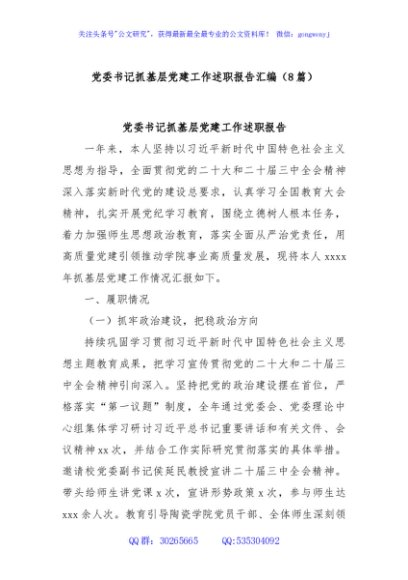 / (8篇)党委书记抓基层党建工作述职报告汇编
