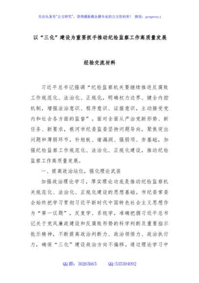 / 以“三化”建设为重要抓手推动纪检监察工作高质量发展经验交流材料