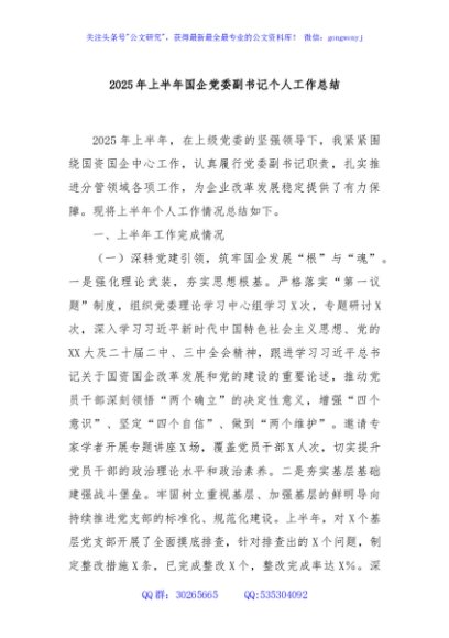 / 2025年上半年国企党委副书记个人工作总结