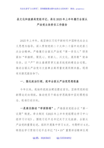 / 县文化和旅游局党组书记、局长2025年上半年履行全面从严治党主体责任工作报告