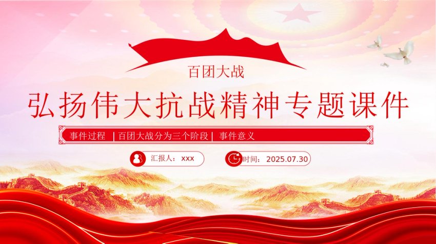 讲稿+PPT课件:百团大战PPT弘扬伟大抗战精神专题课件