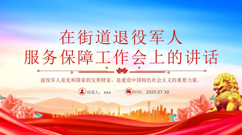 讲稿+PPT课件:在街道退役军人服务保障工作会上的讲话