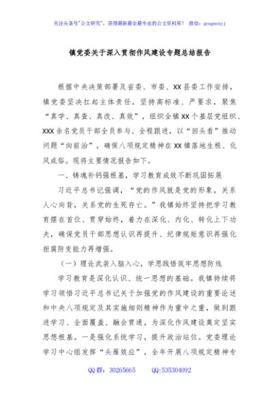 / 镇党委关于深入贯彻作风建设专题总结报告