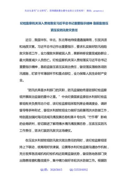 / 纪检监察机关深入贯彻落实习近平总书记重要指示精神 靠前监督压紧压实防汛救灾责任