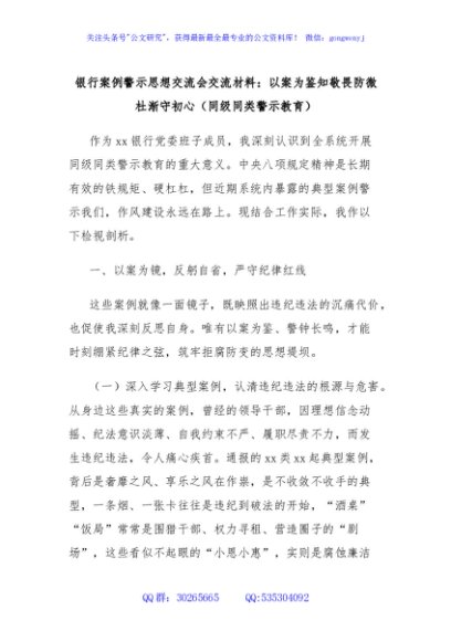 / 银行案例警示思想交流会交流材料:以案为鉴知敬畏防微杜渐守初心(同级同类警示教育)
