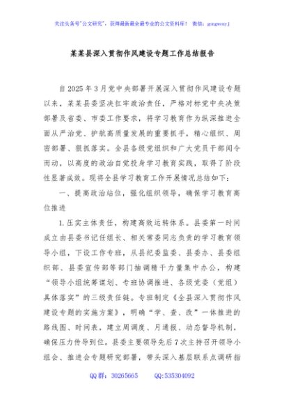 / 某某县深入贯彻作风建设专题工作总结报告