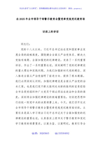 / 在2025年全市领导干部警示教育会暨党章党规党纪教育培训班上的讲话