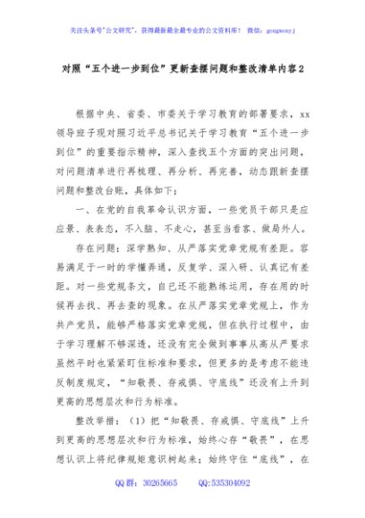 / 对照“五个进一步到位”更新查摆问题和整改清单内容2