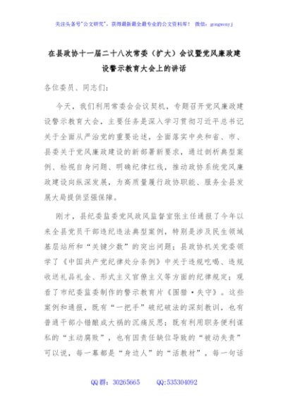 / 在县政协十一届二十八次常委(扩大)会议暨党风廉政建设警示教育大会上的讲话