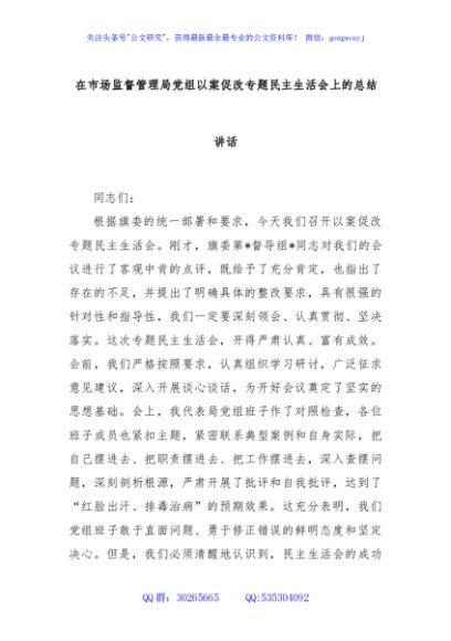 / 在市场监督管理局党组以案促改专题民主生活会上的总结讲话