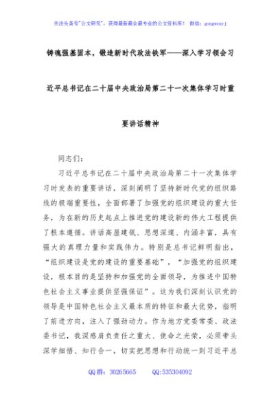 / 铸魂强基固本,锻造新时代政法铁军——深入学习领会总书记在二十届中央政治局第二十一次集体学习时重要讲话精神