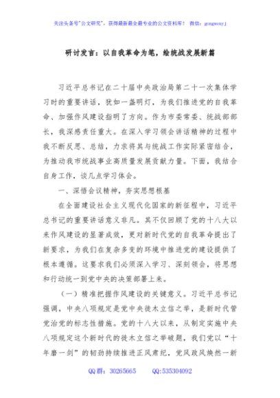 / 研讨发言:以自我革命为笔,绘统战发展新篇