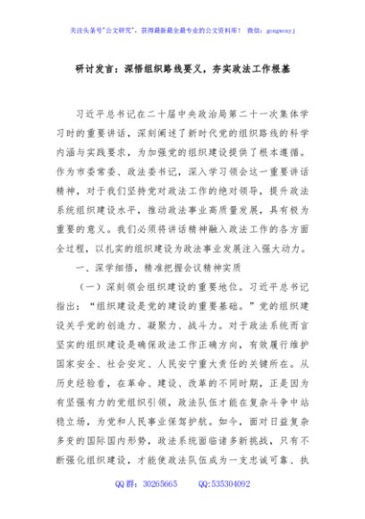 研讨发言:深悟组织路线要义,夯实政法工作根基
