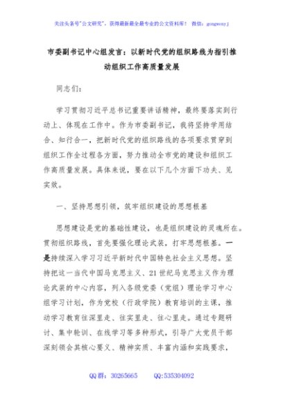 / 市委副书记中心组发言:以新时代党的组织路线为指引推动组织工作高质量发展
