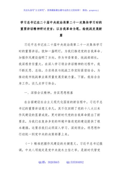 / 学习总书记在二十届中央政治局第二十一次集体学习时的重要讲话精神研讨发言:以自我革命为笔,绘统战发展新篇