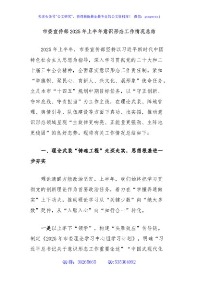 / 市委宣传部2025年上半年意识形态工作情况总结