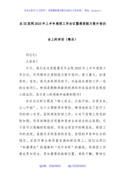 / 在XX医院2025年上半年感控工作会议暨感控能力提升培训会上的讲话(精品)