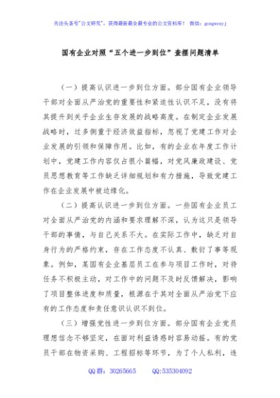 / 国有企业对照“五个进一步到位”查摆问题清单