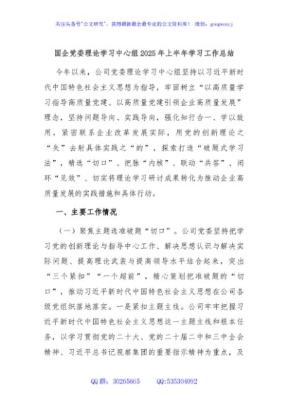 / 国企党委理论学习中心组2025年上半年学习工作总结