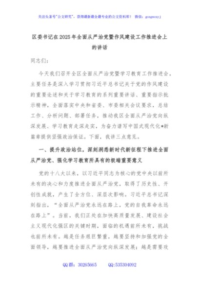 / 区委书记在2025年全面从严治党暨作风建设工作推进会上的讲话
