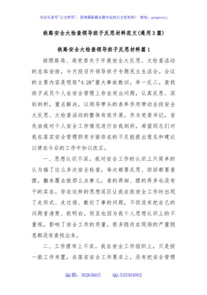/ (通用3篇)铁路安全大检查领导班子反思材料范文