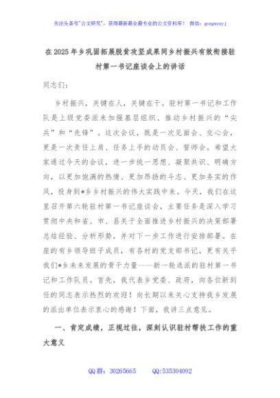 / 在2025年乡巩固拓展脱贫攻坚成果同乡村振兴有效衔接驻村第一书记座谈会上的讲话