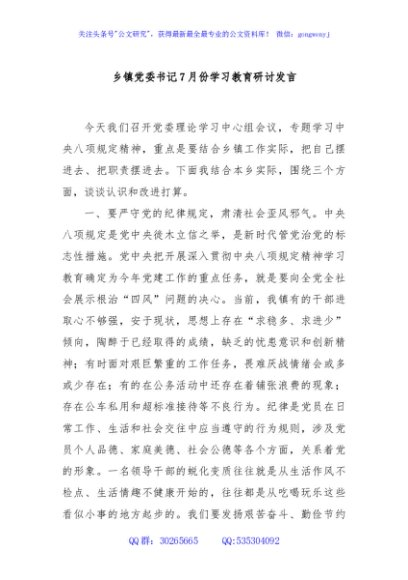 / 乡镇党委书记7月份学习教育研讨发言