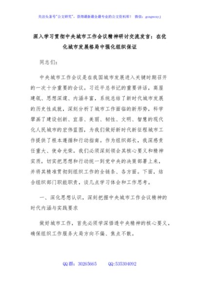 深入学习贯彻中央城市工作会议精神研讨交流发言:在优化城市发展格局中强化组织保证