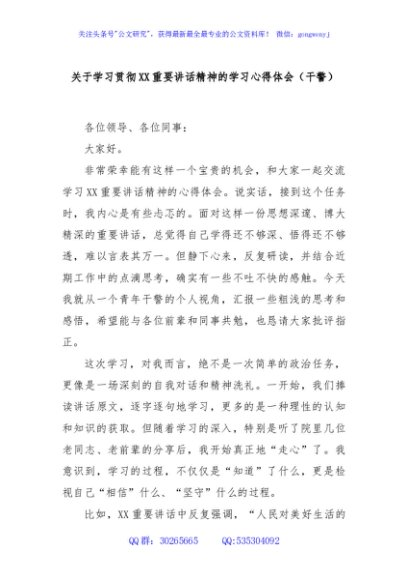关于学习贯彻XX重要讲话精神的学习心得体会(干警)