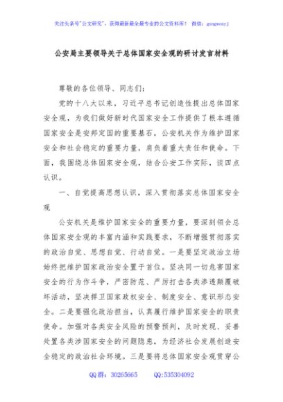/ 公安局主要领导关于总体国家安全观的研讨发言材料