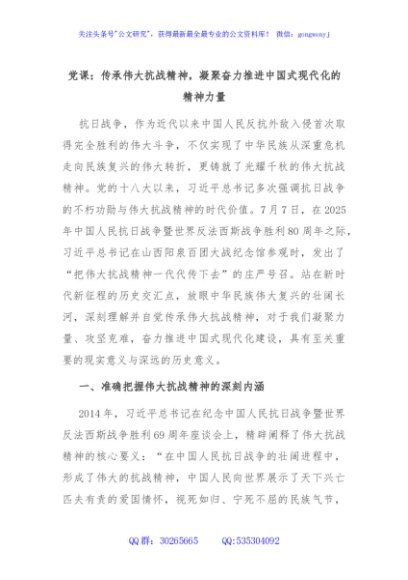 / 党课:传承伟大抗战精神,凝聚奋力推进中国式现代化的精神力量