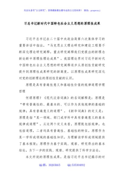 习总书记新时代中国特色社会主义思想的原理性成果