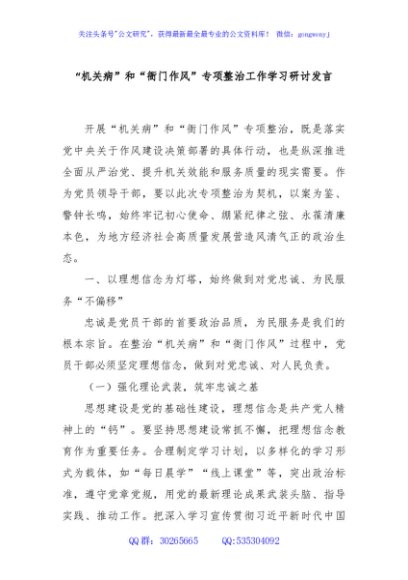 / “机关病”和“衙门作风”专项整治工作学习研讨发言