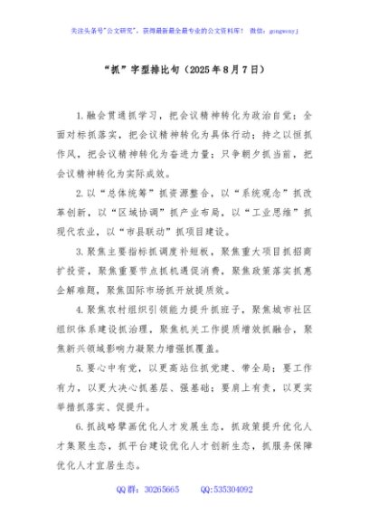“抓”字型排比句(2025年8月7日)