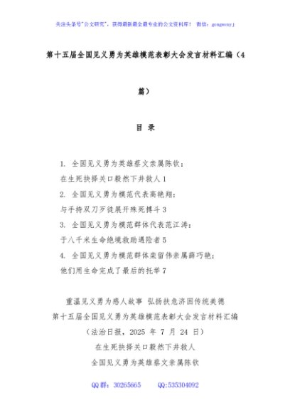 / (4篇)第十五届全国见义勇为英雄模范表彰大会发言材料汇编