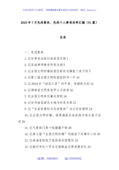 / (91篇)2025年7月先进集体、先进个人事迹材料汇编