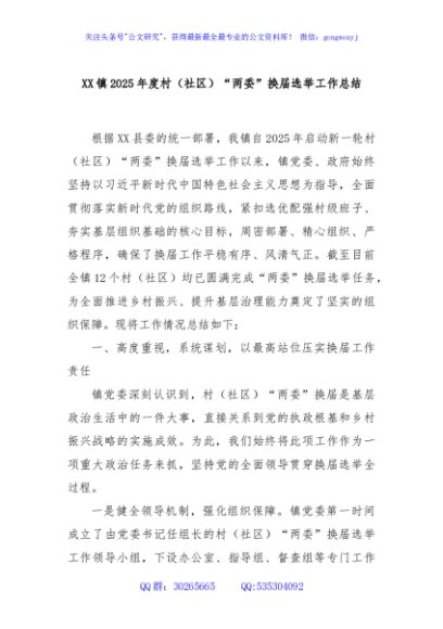 / XX镇2025年度村(社区)“两委”换届选举工作总结