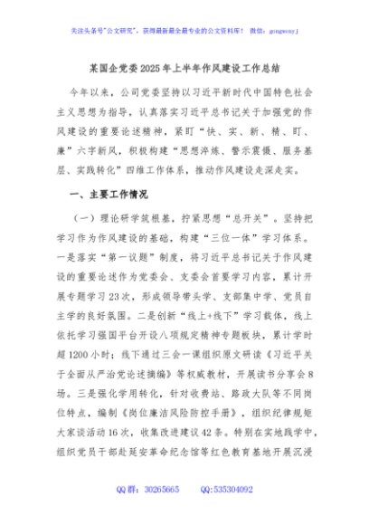 / 某国企党委2025年上半年作风建设工作总结