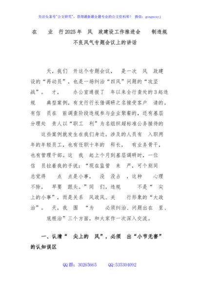 / 在县农业银行2025年党风廉政建设工作推进会暨扼制违规吃喝不良风气专题会议上的讲话